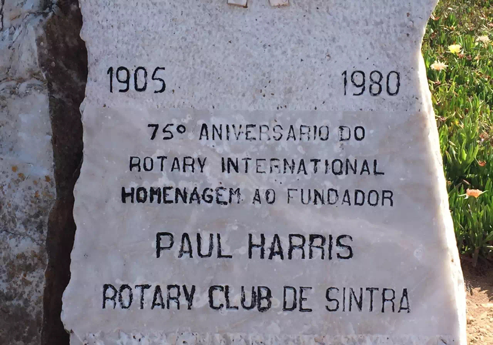 不遠(yuǎn)處刻著航海輪舵形狀的石牌是辛特拉扶輪社為紀(jì)念國(guó)際扶輪社的創(chuàng)建者——美國(guó)人保羅?哈里斯而立的。李仁奇 攝