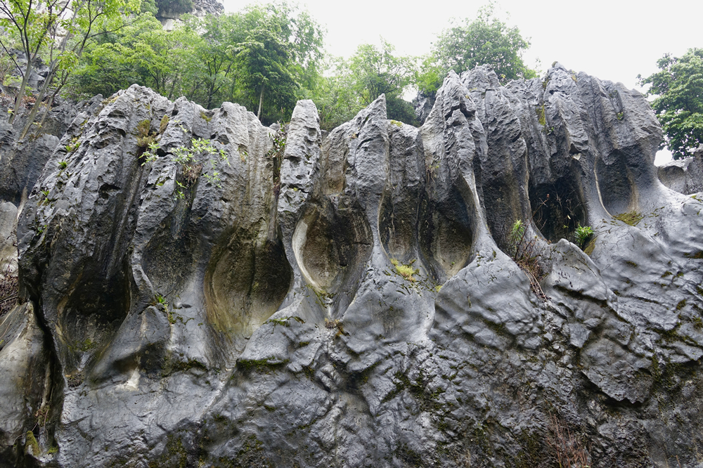 興文石海的地質(zhì)遺跡主要有:二疊紀(jì)地質(zhì)剖面、地表喀斯特地形、洞穴堆積物、瀑布、溶蝕峽谷、古生物化石、風(fēng)暴巖沉積等,其中最著名的是天坑,是中國發(fā)現(xiàn)和研究天坑最早的地方。李仁奇 攝
