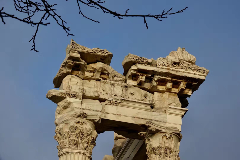 德國考古學家19世紀曾對這一遺址考古發(fā)掘,部分祭壇和殘存浮雕經修繕裝配后現(xiàn)陳列在德國柏林的帕加馬博物館。李仁奇 攝