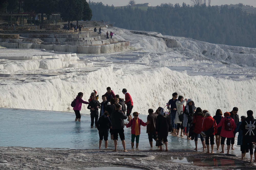 在這里你會聽到這樣一個傳說:曾經(jīng),牧羊人安迪密恩為了和希臘月神瑟莉妮幽會,竟然忘記了擠羊奶,致使羊奶恣意橫流,蓋住了整座丘陵,這便是土耳其民間有關(guān)棉花堡的美麗來由。李仁奇 攝