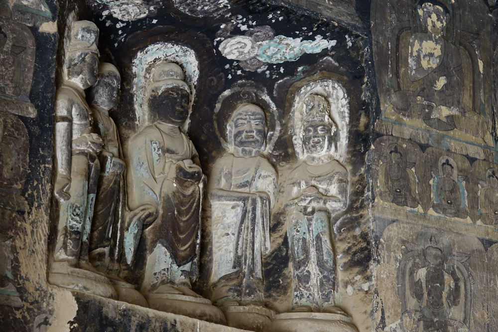 炳靈寺石窟的石刻造像,時代不同,風(fēng)格各異,但都以形寫神,形神兼?zhèn)?,壁畫技法繼承了唐宋傳統(tǒng),均有很高的藝術(shù)和研究價值。李仁奇 攝
