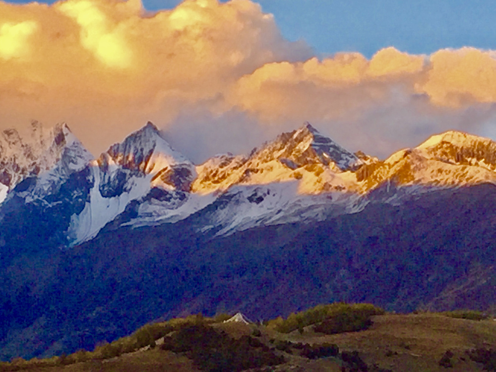 如果天氣晴好,在四姑娘山鎮(zhèn)旁山坡上的觀景臺可以眺望到同框的四座雪峰。李仁奇 攝