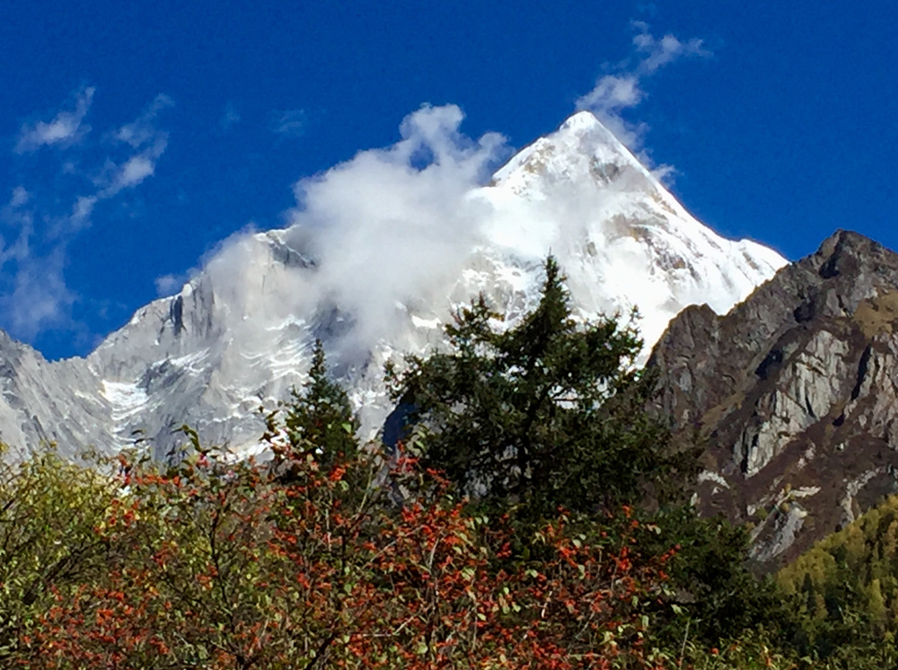 四座山峰長年冰雪覆蓋,因幺妹身材最為苗條,經常云遮霧繞,最難窺得全貌,素有“蜀山之后”、“東方的阿爾卑斯”之稱,與“蜀山之王”貢嘎山遙遙相望。李仁奇 攝