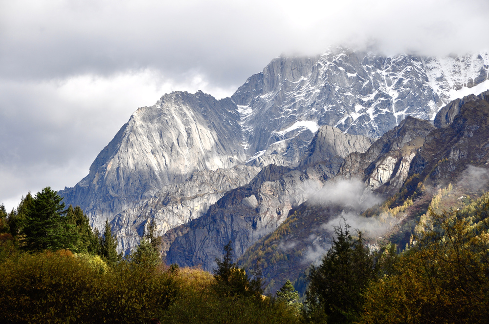 四姑娘山以雄峻挺拔聞名,山體陡峭,直至藍(lán)天,冰雪覆蓋,銀光照人。山麓森林茂密,綠草如茵,清澈的溪流潺潺不絕,宛如一派秀美的南歐風(fēng)光。李仁奇 攝