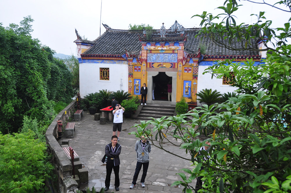 山頂有古剎天子殿,創(chuàng)建于康熙、乾隆年間,是此寨最高點(diǎn)。正殿墻壁有女?huà)z補(bǔ)天故事的壁畫(huà),畫(huà)下方,有一遺石,似石寶寨。李仁奇 攝