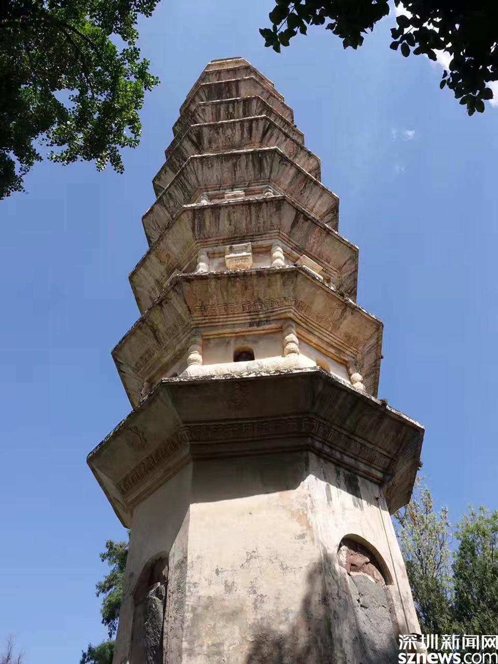 在千尋塔的塔頂四角,原來(lái)鑄有4只巨大的金翅鳥(niǎo),“金翅鳥(niǎo)”又名“大鵬金翅鳥(niǎo)”,為佛教護(hù)法神中的“天龍八部”之一,傳說(shuō)能鎮(zhèn)水患,后毀于地震。李仁奇 攝