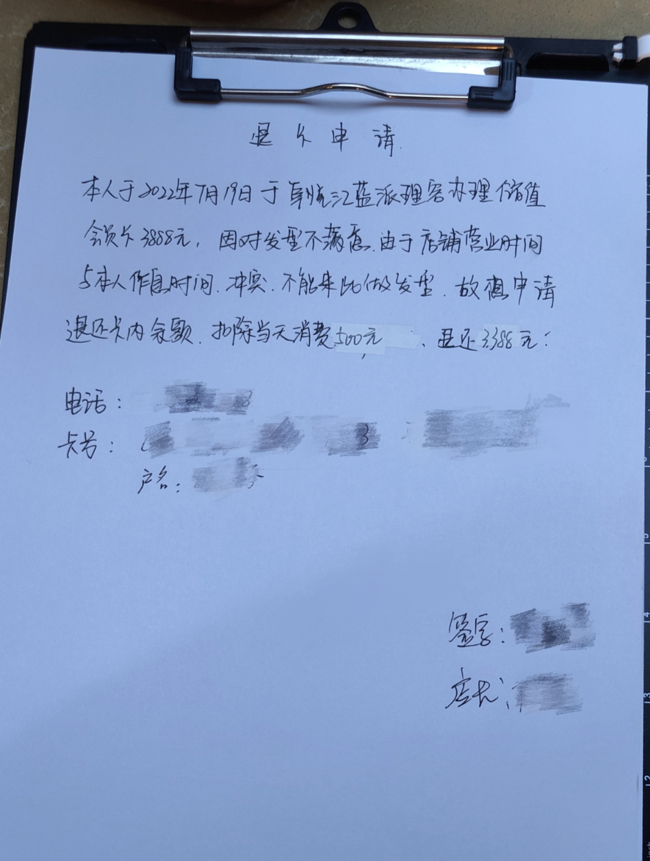 本人于2022年7月19日在該商家處花費3888元充值會員卡,后因對發(fā)型不滿意及店鋪營業(yè)時間與本人作息時間沖突,故申請退還卡內(nèi)余額。商家于2023年4月25日同意在5個工作日內(nèi)退款,但一直拖延,至今仍未退款。