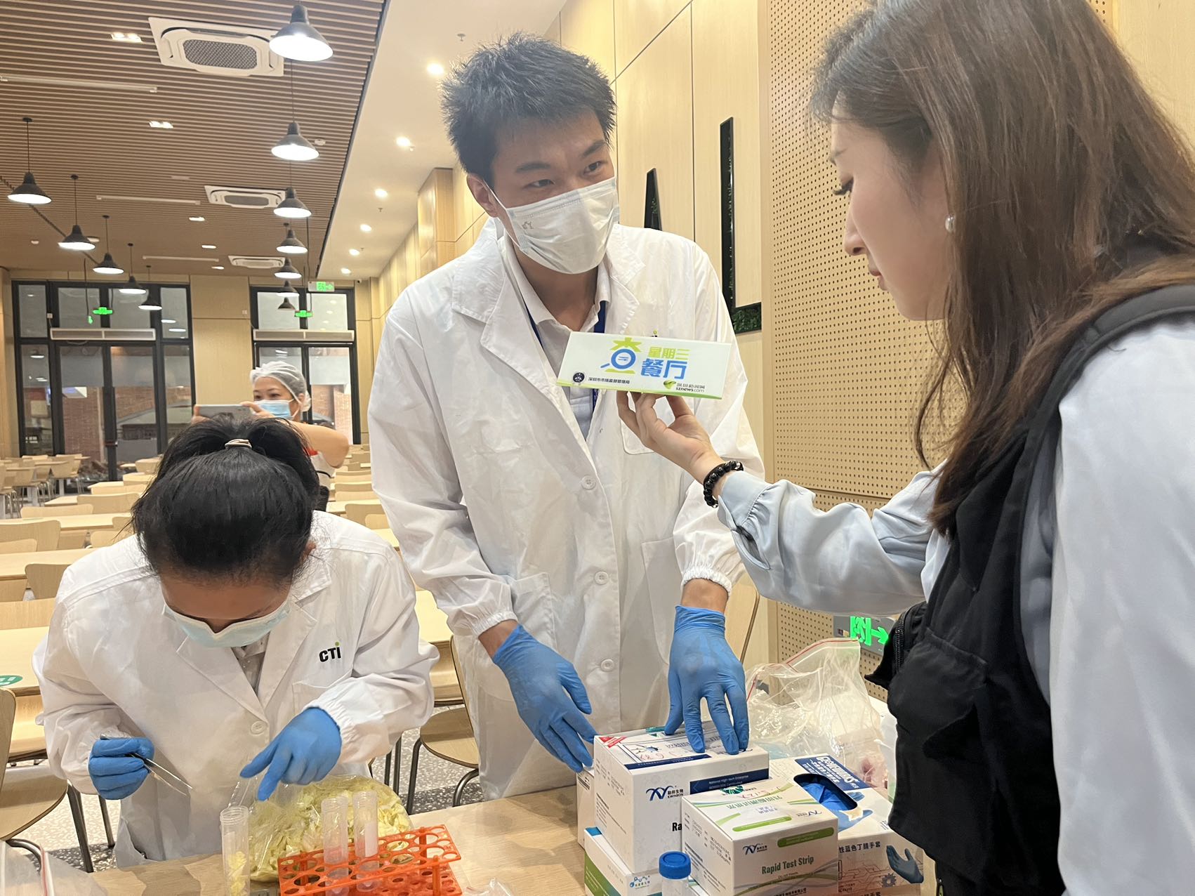 執(zhí)法行動(dòng)進(jìn)行的同時(shí),快檢人員也來到現(xiàn)場對(duì)食材進(jìn)行抽樣檢測(cè)。據(jù)介紹,本次抽樣檢查的食材樣品均合格。