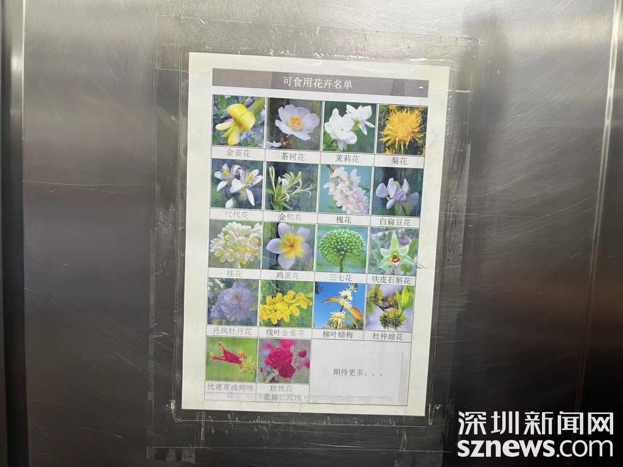 后廚分為預(yù)處理區(qū)、操作區(qū)、冷食專間、留樣區(qū)、糕點(diǎn)間、洗消區(qū)等區(qū)域。在后廚操作區(qū),執(zhí)法人員隨機(jī)查看調(diào)料標(biāo)簽,均在保質(zhì)期內(nèi);冰箱食材貼有相應(yīng)標(biāo)簽,且表面特別張貼了“可食用花卉名單”。專間內(nèi),冰柜中食材均有相應(yīng)標(biāo)簽,且分區(qū)域存儲(chǔ),無混放現(xiàn)象;留樣冰箱中的樣品重量、時(shí)間、標(biāo)簽及臺(tái)賬記錄均符合要求。