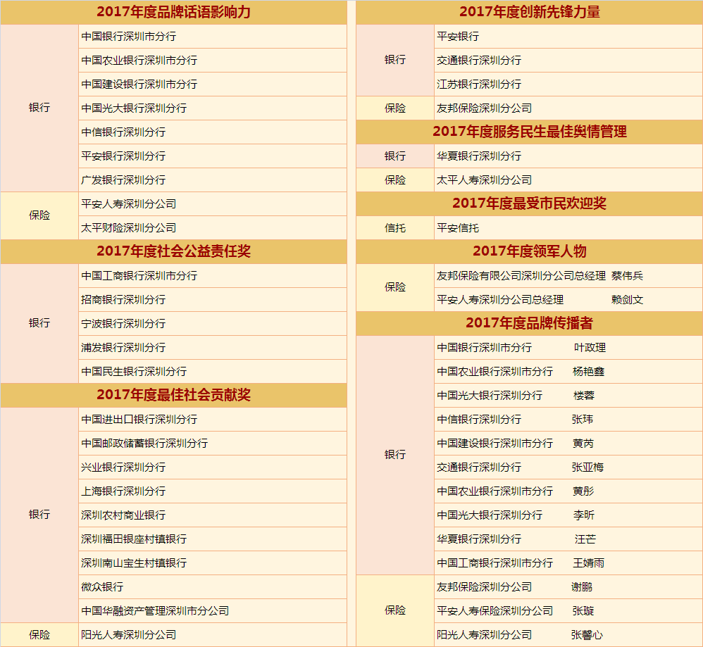 2017年,深圳金融實(shí)現(xiàn)快速發(fā)展。為了讓金融真正回歸服務(wù)實(shí)體經(jīng)濟(jì)的本源,真正脫虛向?qū)?,深圳新聞網(wǎng)將聯(lián)手行業(yè)權(quán)威協(xié)會(huì)、第三方機(jī)構(gòu)、媒體,以“新時(shí)代·新服務(wù)·新金融”為主題,以深圳金融機(jī)構(gòu)如何回歸本原、改革創(chuàng)新、服務(wù)實(shí)體經(jīng)濟(jì)為核心,從“品牌話語(yǔ)影響力”、“創(chuàng)新先鋒力量”、“輿情管理 服務(wù)民生”三個(gè)角度出發(fā),邀請(qǐng)眾多金融機(jī)構(gòu)共同發(fā)力,自覺(jué)加入金融回歸服務(wù)實(shí)體經(jīng)濟(jì)本源這一滾滾時(shí)代洪流中來(lái)。作為一個(gè)金融公民,我們也盡一份該盡的社會(huì)責(zé)任,為市民遴選最能代表深圳本地實(shí)力及形象的金融機(jī)構(gòu),同時(shí)頒發(fā)重磅大獎(jiǎng):“金桐獎(jiǎng)——年度品牌話語(yǔ)影響力”、“金桐獎(jiǎng)——年度創(chuàng)新先鋒力量”、“金桐獎(jiǎng)——服務(wù)民生最佳輿情管理”。
