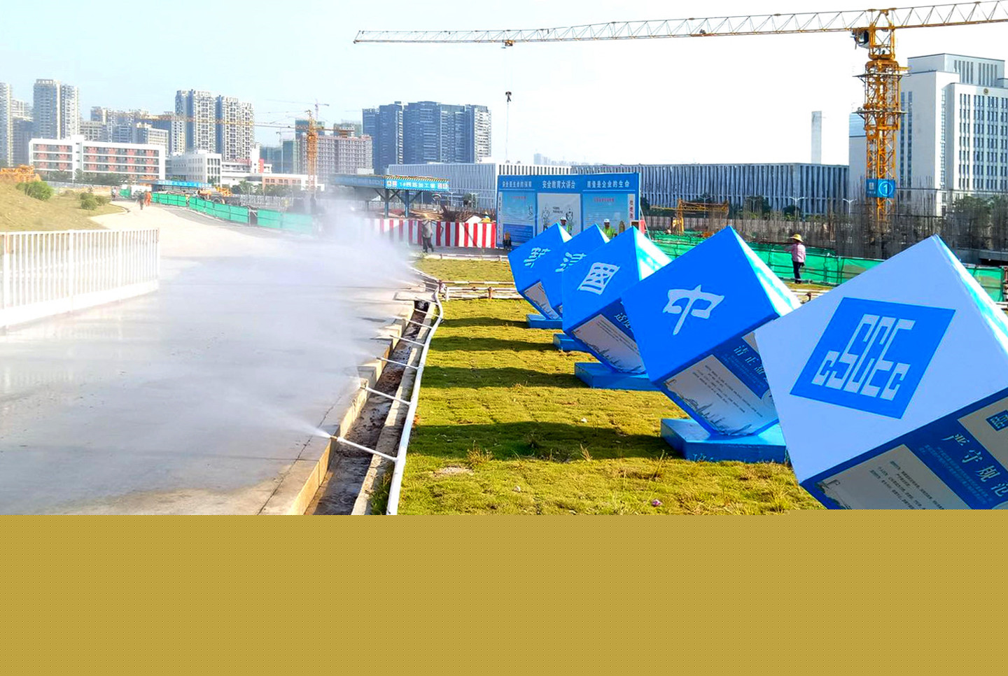 項(xiàng)目開工以來(lái),采取自動(dòng)噴淋系統(tǒng)、高壓霧炮機(jī)等措施,治理?yè)P(yáng)塵污染。
