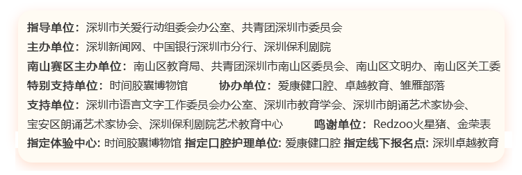 讓閱讀成為動人的風(fēng)景,讓故事的魅力感動深圳。為助力建設(shè)良好的青少年閱讀環(huán)境,激發(fā)學(xué)生閱讀興趣,倡導(dǎo)親子閱讀,共建和諧家庭關(guān)系。2020年,第二十一屆深圳讀書月主題活動“誰是故事大王·第四季”在共青團深圳市委員會、深圳市關(guān)愛行動組委會辦公室的指導(dǎo)下再出發(fā)。更長的活動周期,更豐富的參與形式,更專業(yè)的賽制,“誰是故事大王·第四季”等你來解鎖與挑戰(zhàn)!